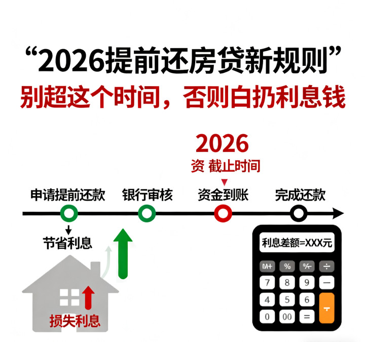 2026年一开年,房贷市场就迎来了实实在在的新调整,尤其是提前还款的规则变了不少。以前大家手里有钱想提前还房贷,要么要交高额违约金,要么流程繁琐,现在政策优化后更省心,但也有了明确的“最佳时间窗口”。把握好这个时间,能省下几十万利息,要是错过或踩错节点,很可能白忙活一场,还得多掏钱。
